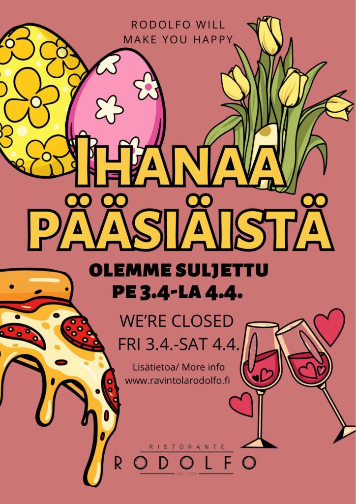 Pe 3.4- La 4.4. PÄÄSIÄINEN SULJETTU / EASTER CLOSED